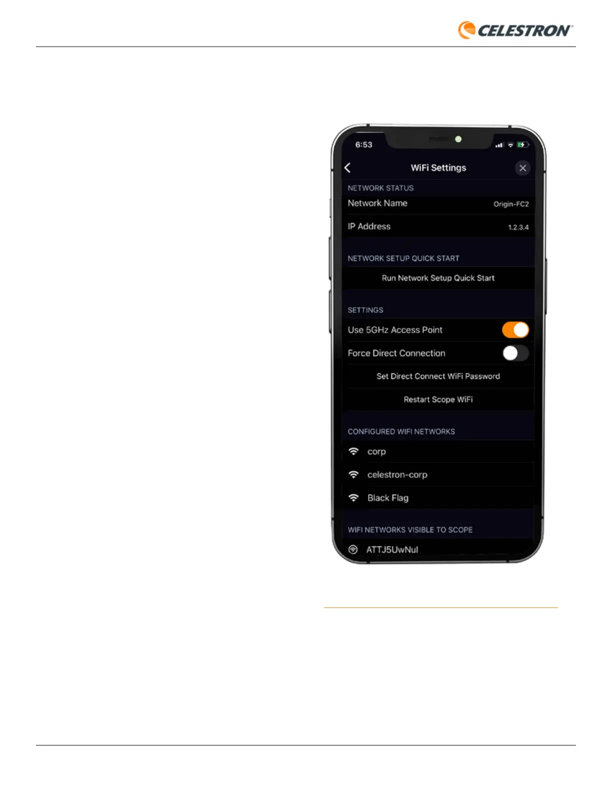 • Restart Scope WiFi – This restarts Origin’s WiFi