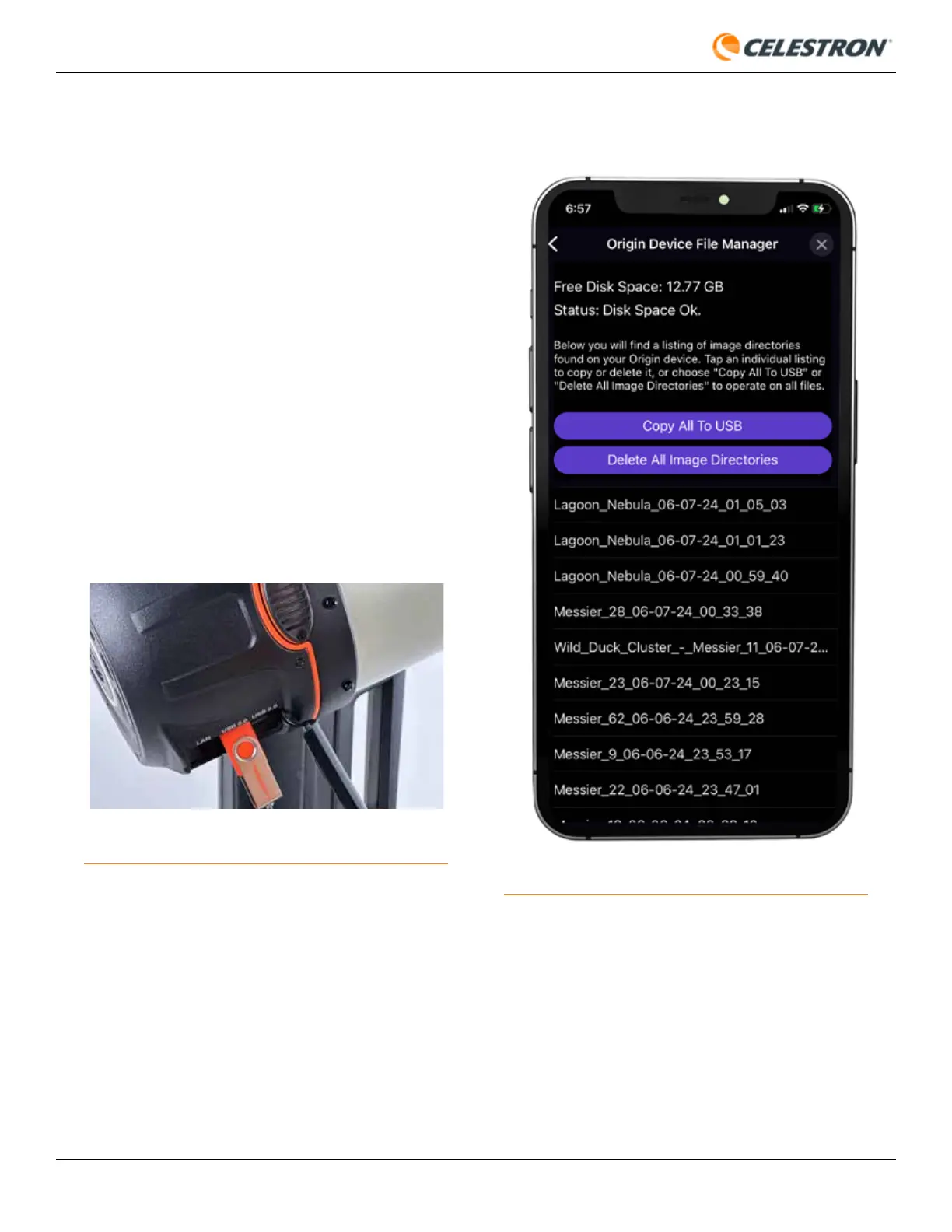 FIG 27: Insert a USB thumb drive into the USB port on Origin’s tube to transfer