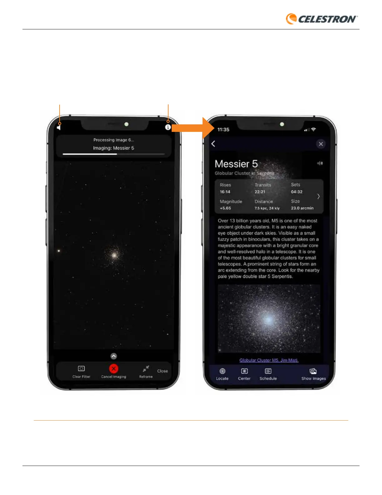 of the most popular celestial objects by pressing the speaker icon in the upper left corner of the Camera View.
