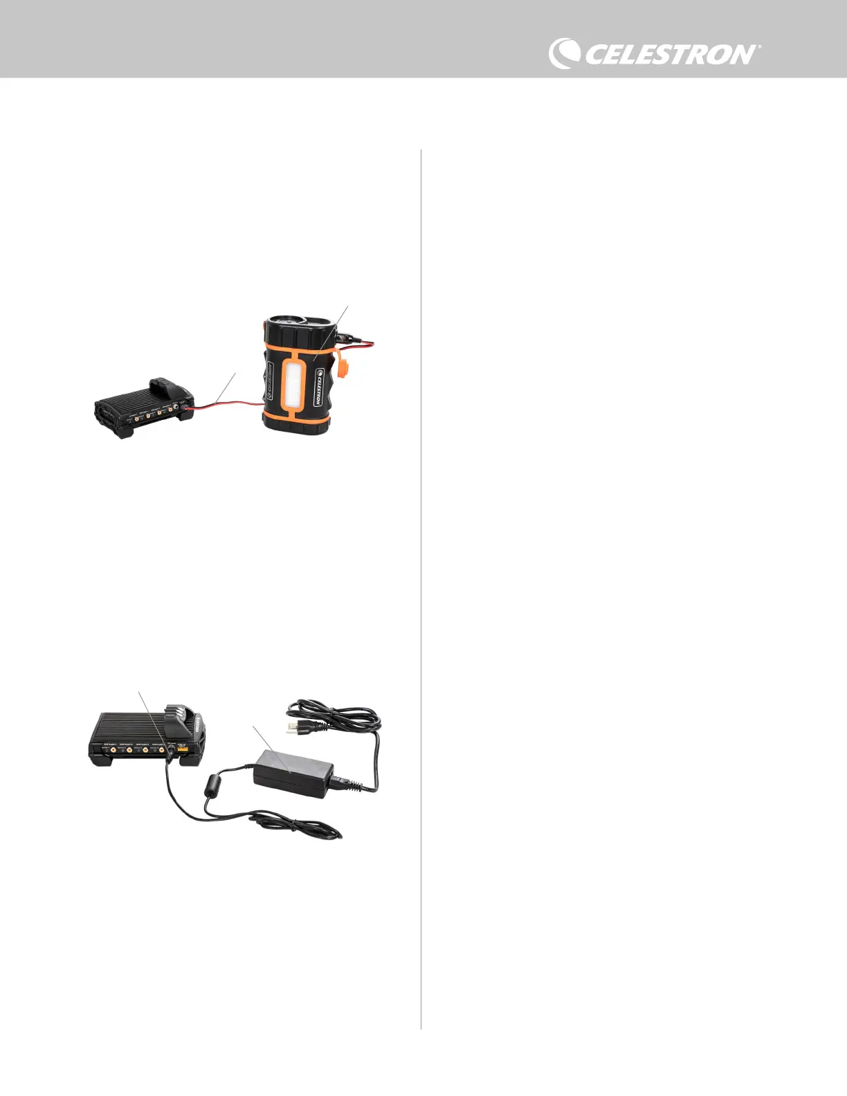 à une prise secteur, vous pouvez utiliser l'adaptateur secteur Celestron 5 A pour alimenter le