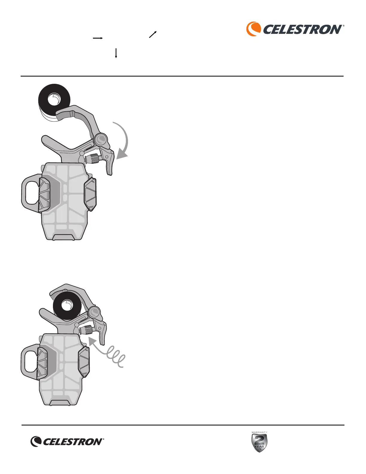 Tirez sur le levier pour ouvrir la pince. Positionnez la pince autour de l’oculaire et relâchez.