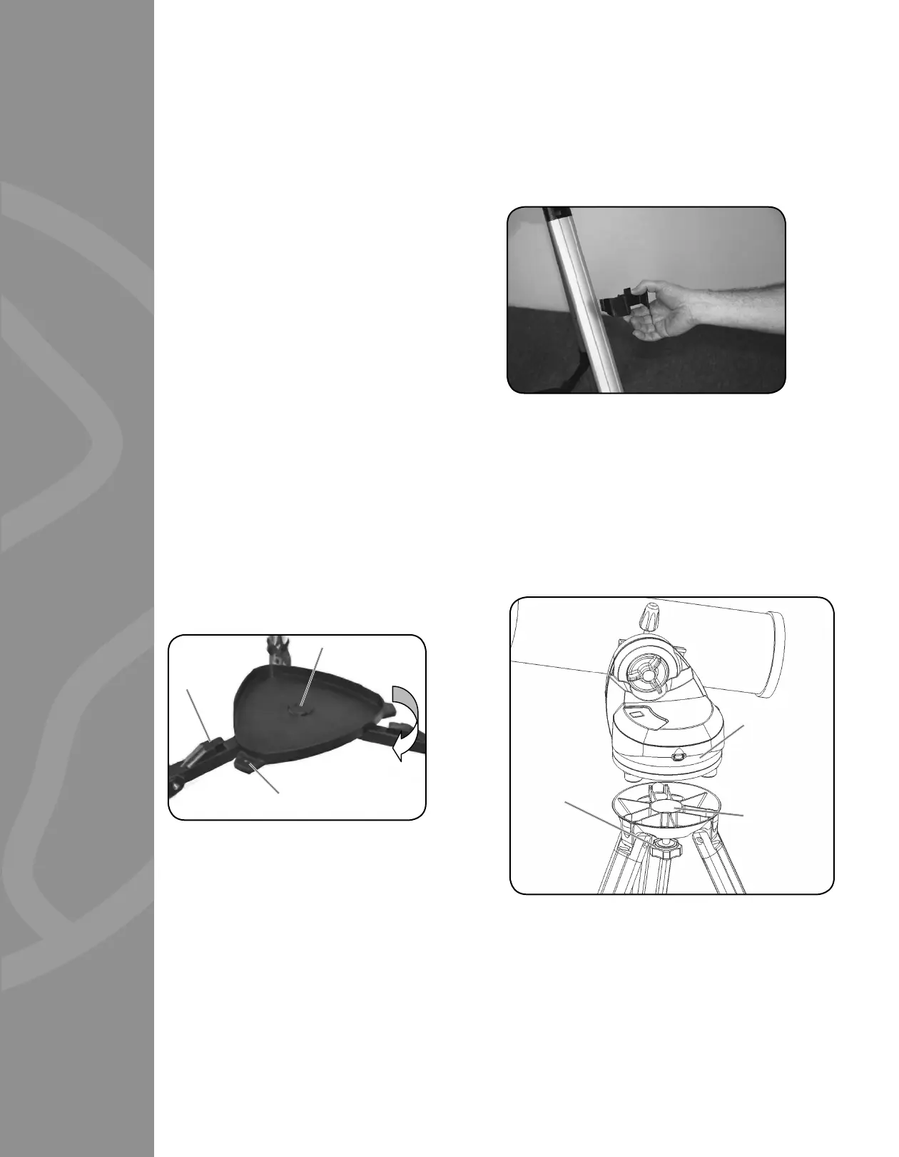 the tripod. First, install the accessory tray onto the tripod legs: