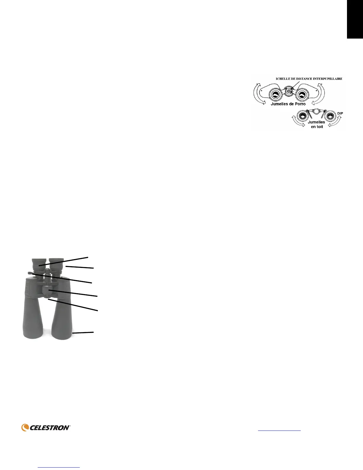 Nous vous remercions d’avoir fait l’acquisition de jumelles Celestron et nous espérons qu’elles vous procureront des années de satisfaction. Pour utiliser vos jumelles