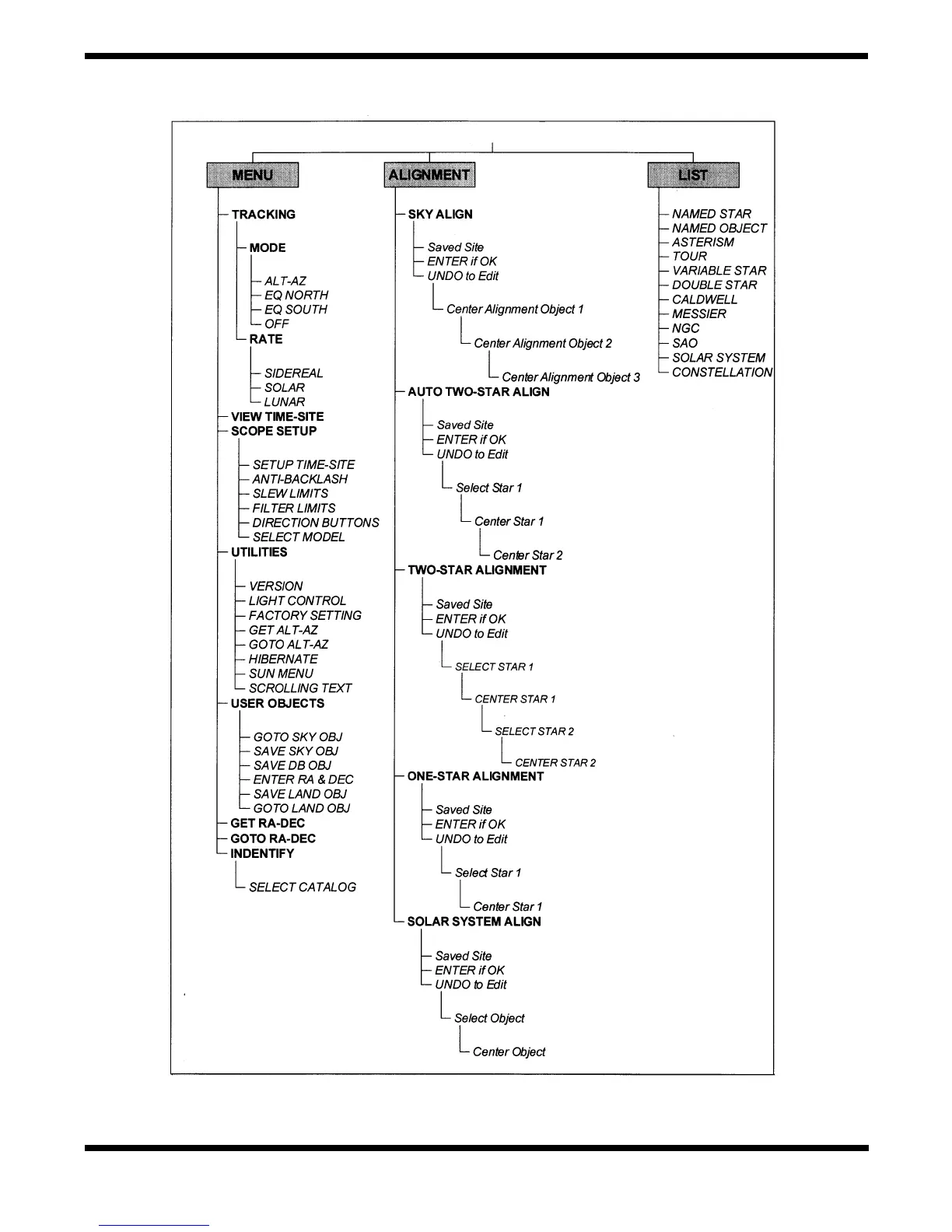 The following figure is a menu tree showing the sub-menus associated with the primary command functions.