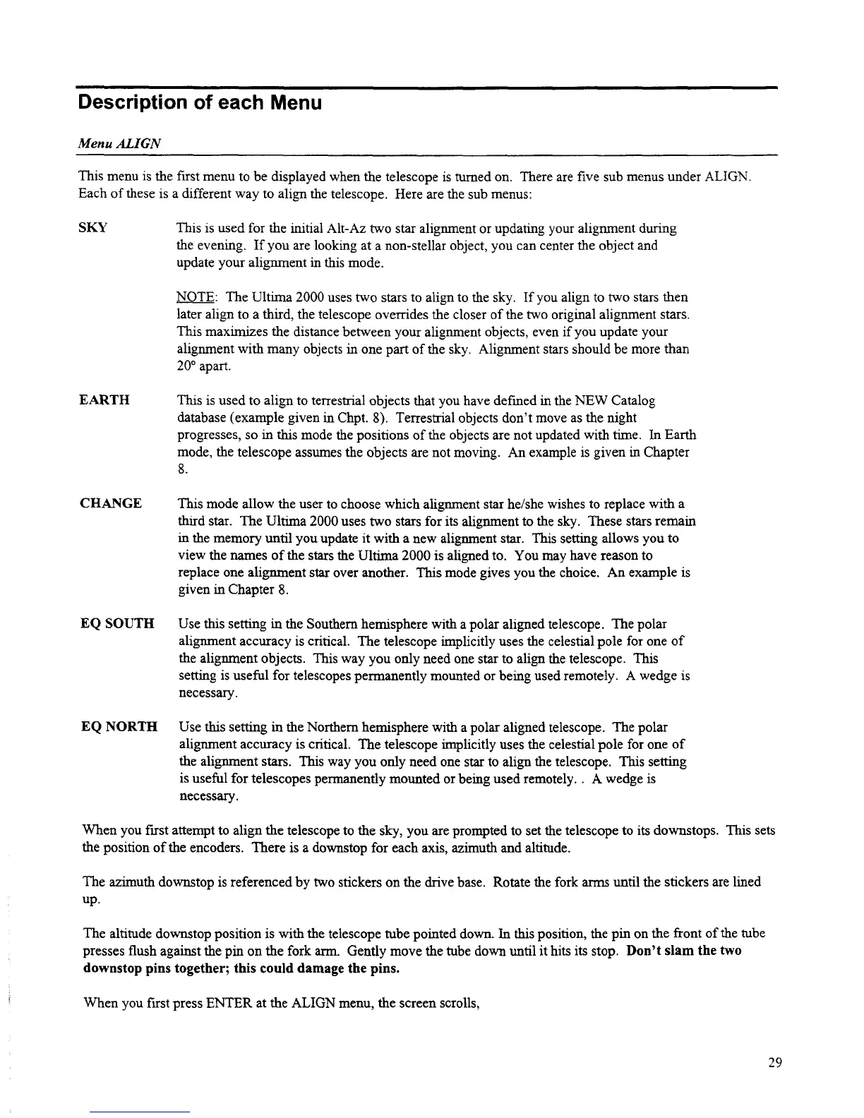 Celestron Ultima 2000 - Description of each Menu; Menu Align