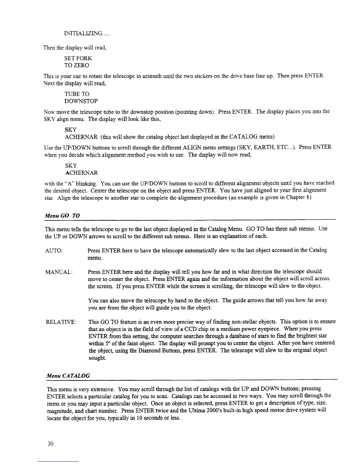 Celestron Ultima 2000 - Menu GO to; Menu CATALOG