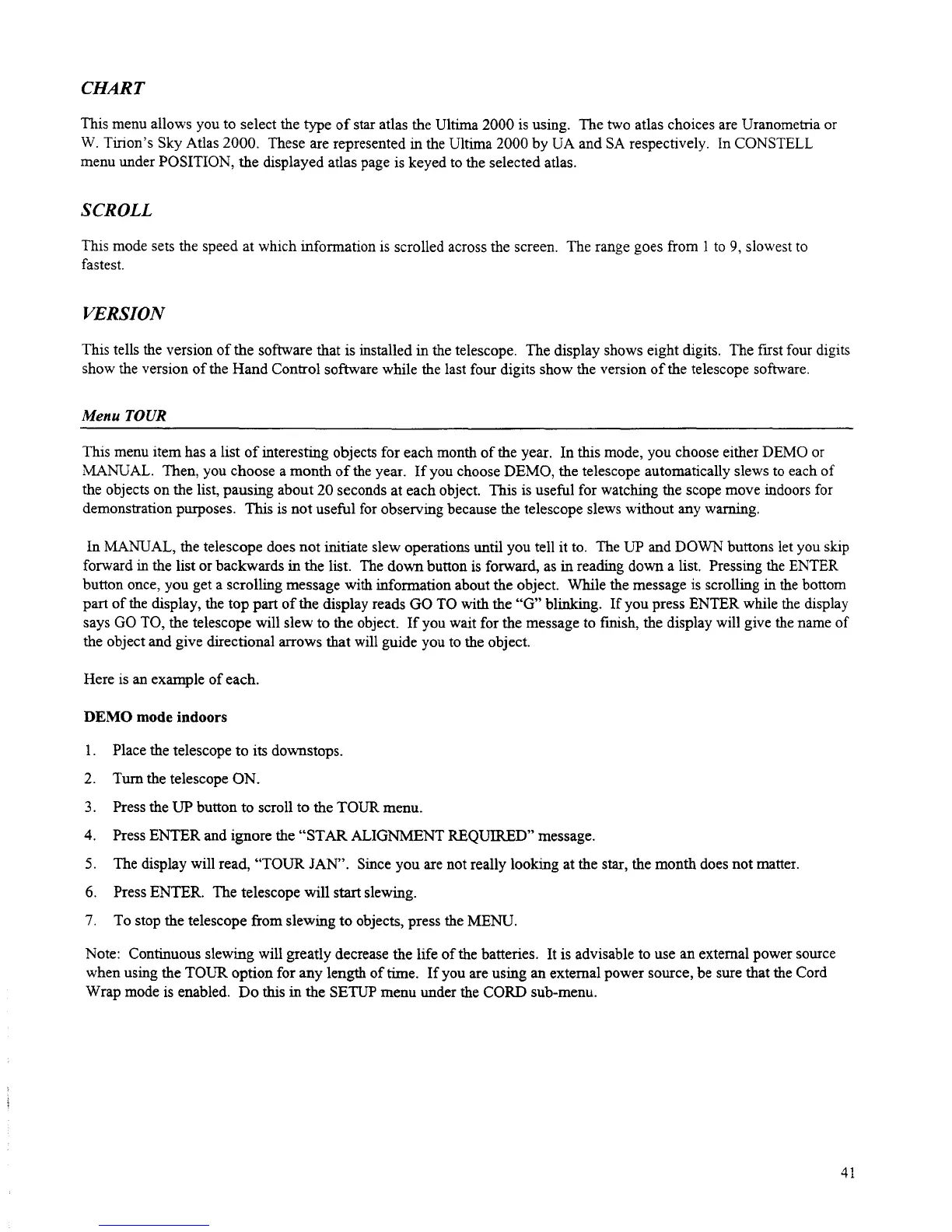 Celestron Ultima 2000 - Chart; Scroll; Version; Menu TOUR