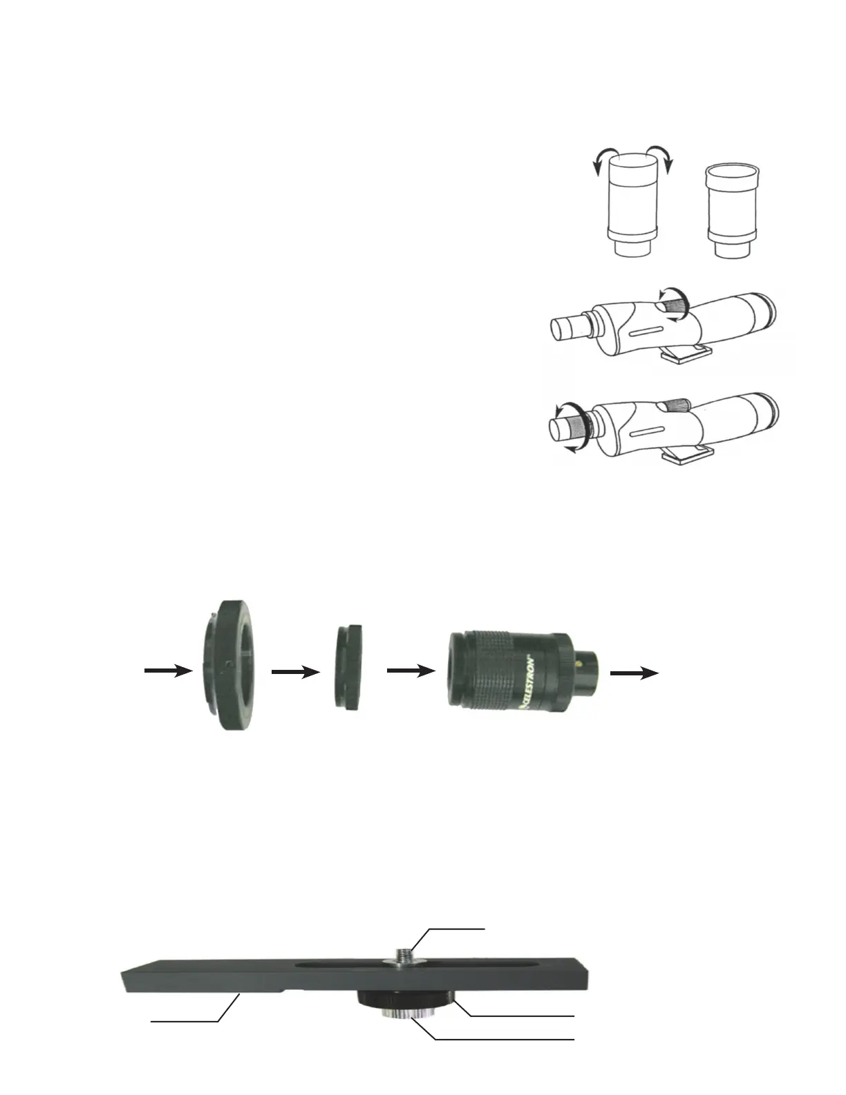 situé sur le dessus de l’oculaire. Pour les modèles Ultima 65, vissez l’adaptateur pour bague en T (inclus avec votre modèle) sur le filetage de l’oculaire, puis