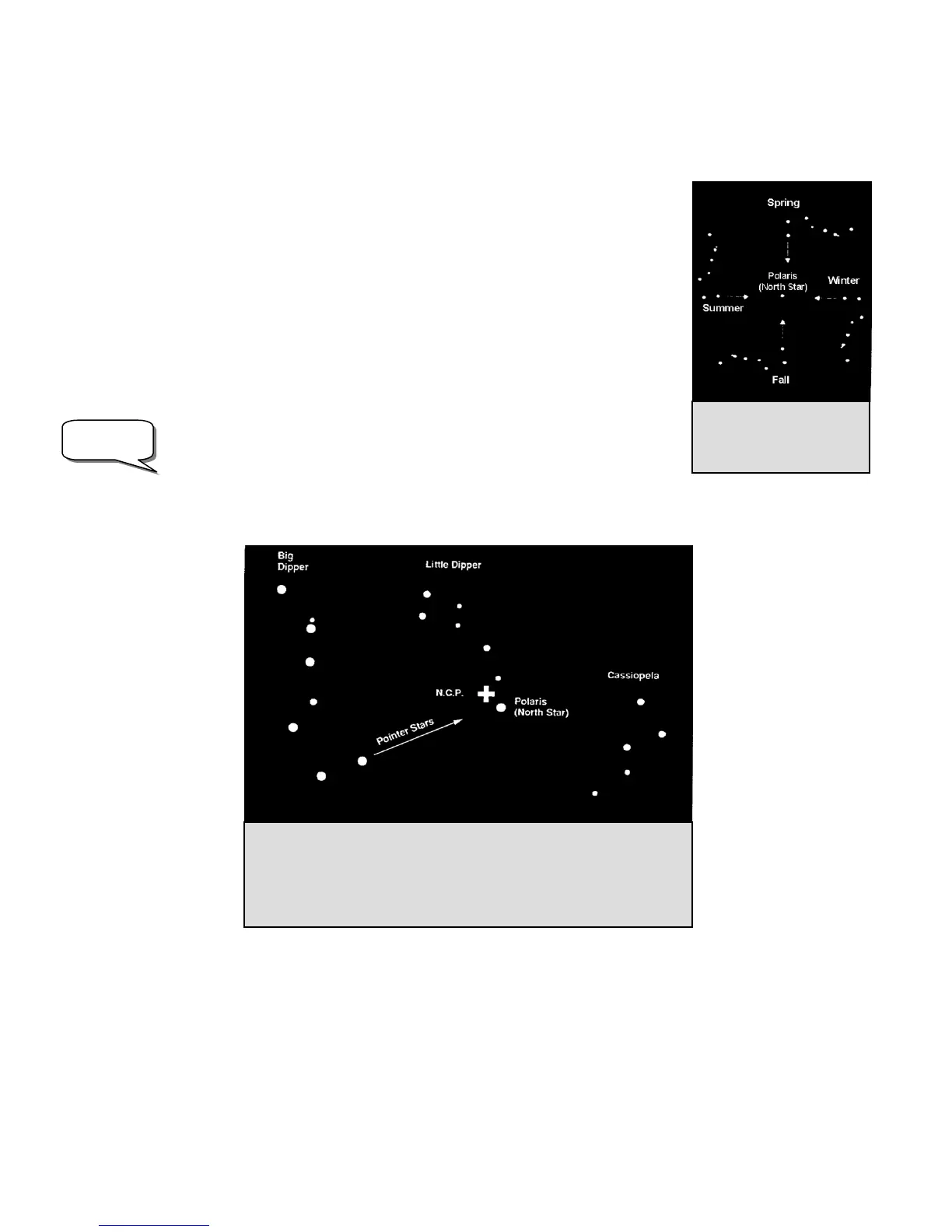 toward the Little Dipper. They point to Polaris (see Figure 13). The position of the Big Dipper changes