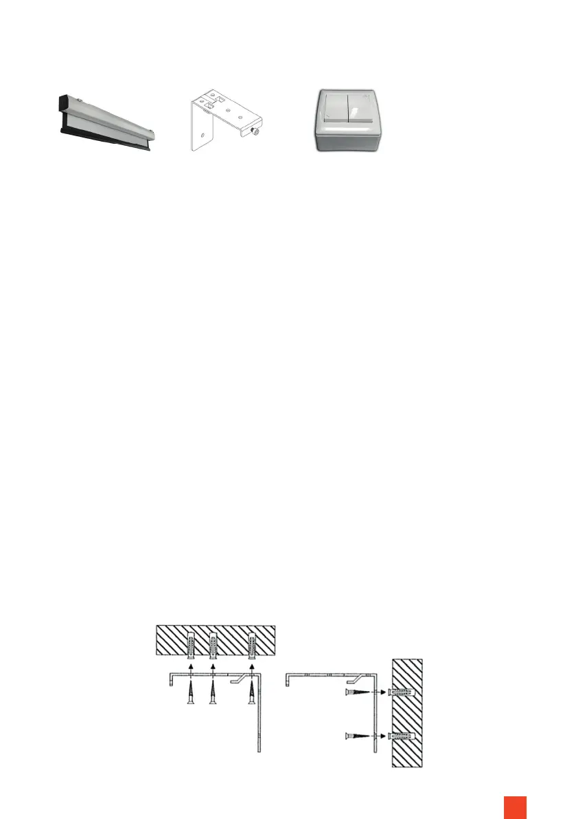 Projektorduken kan monteras på väggen eller i taket. Skaffa lämpligt monte-