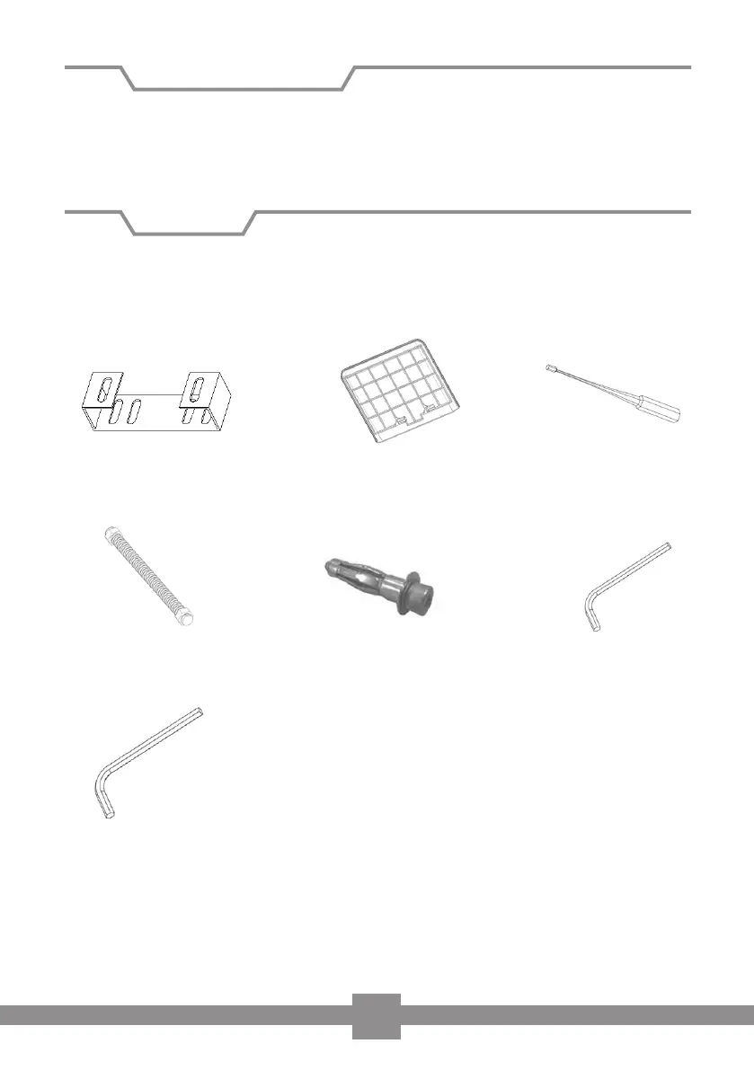 4 x Wall plugs (E) 1 x Allen key (5mm) (F)