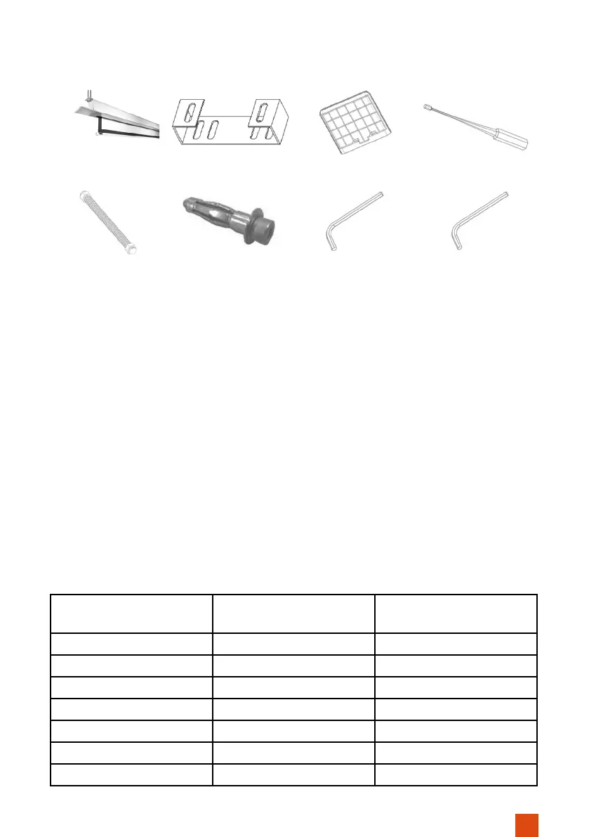 Antes de la instalación, compruebe si se incluyen todas las piezas indicadas
