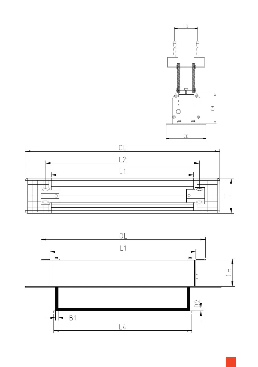 Mät längden „L1“ och djupet. „CD“ på projek-