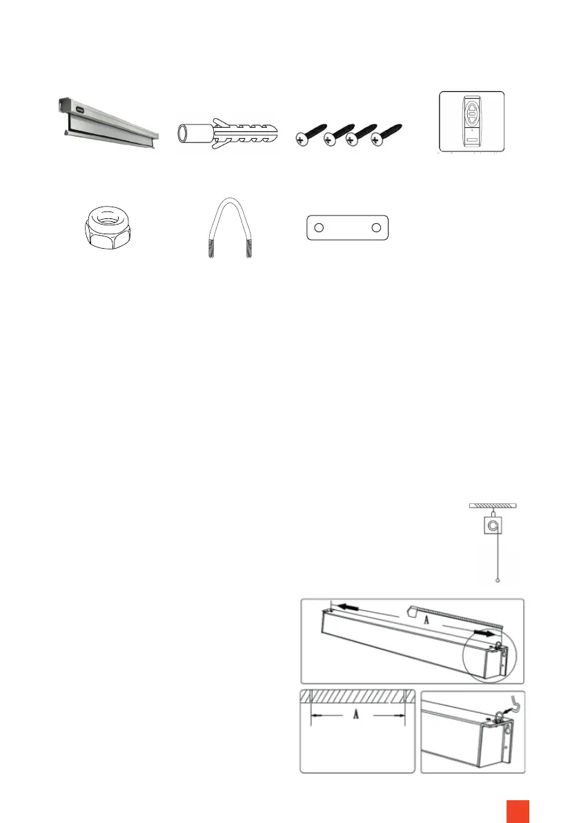 Het scherm kan aan de wand/plafond worden geïnstalleerd of aan het plafond