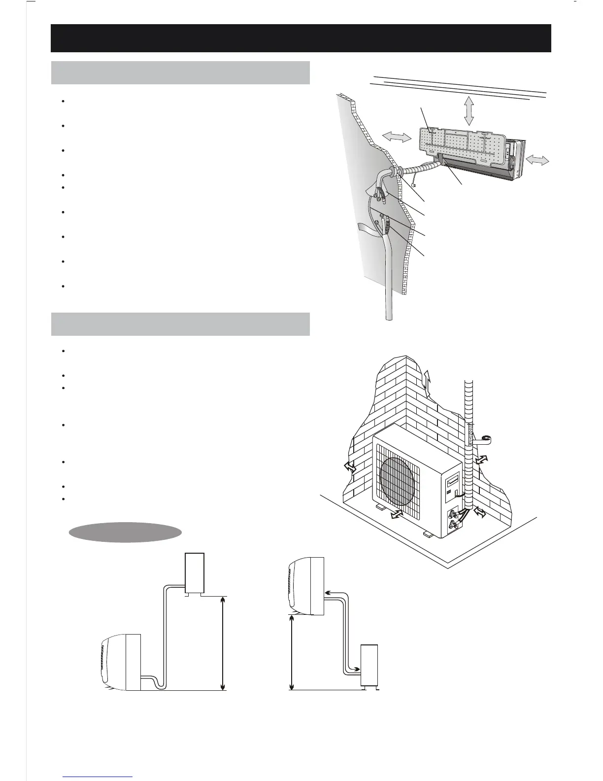 Install the unit where connection between indoor and