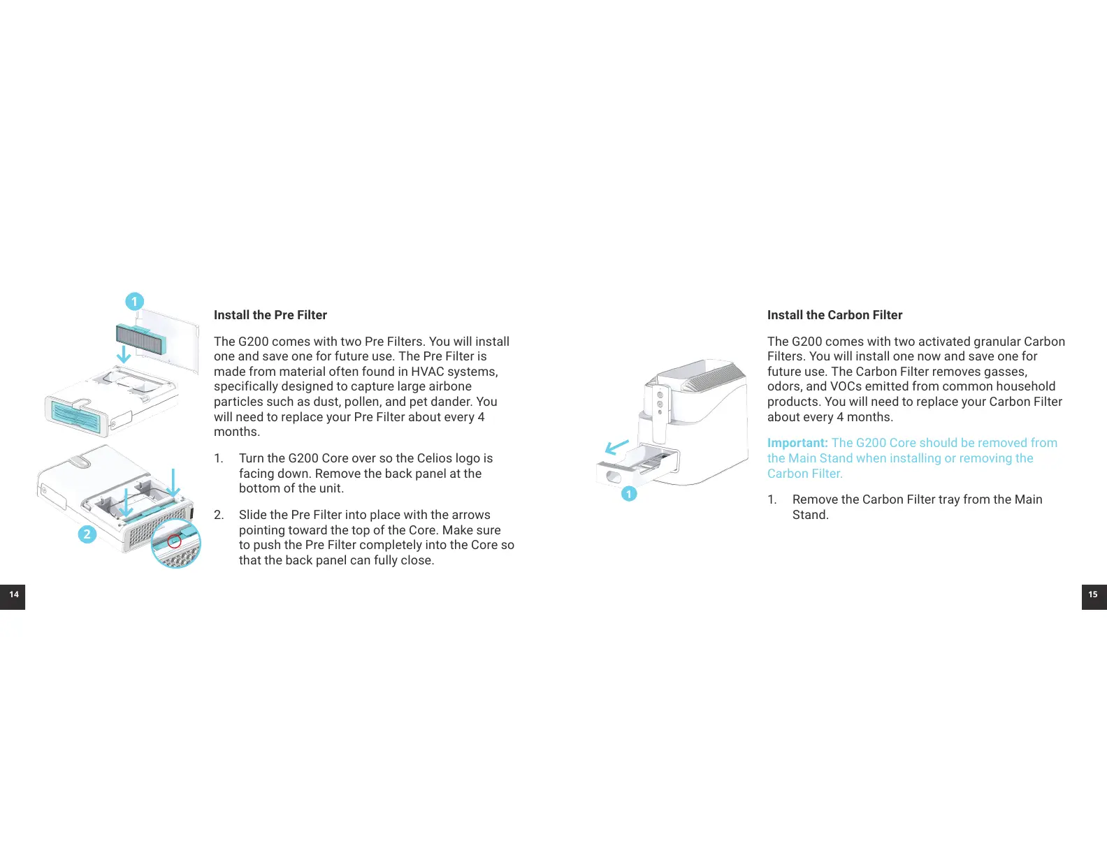 The G200 comes with two activated granular Carbon