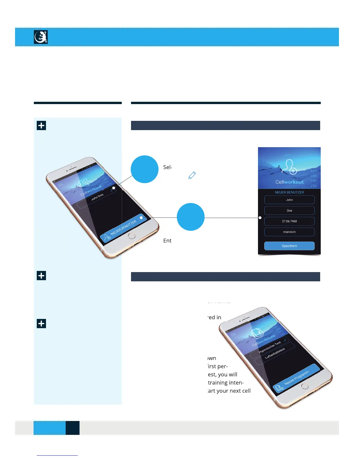 In the CellAir® Gecko app you can create your own training programs and