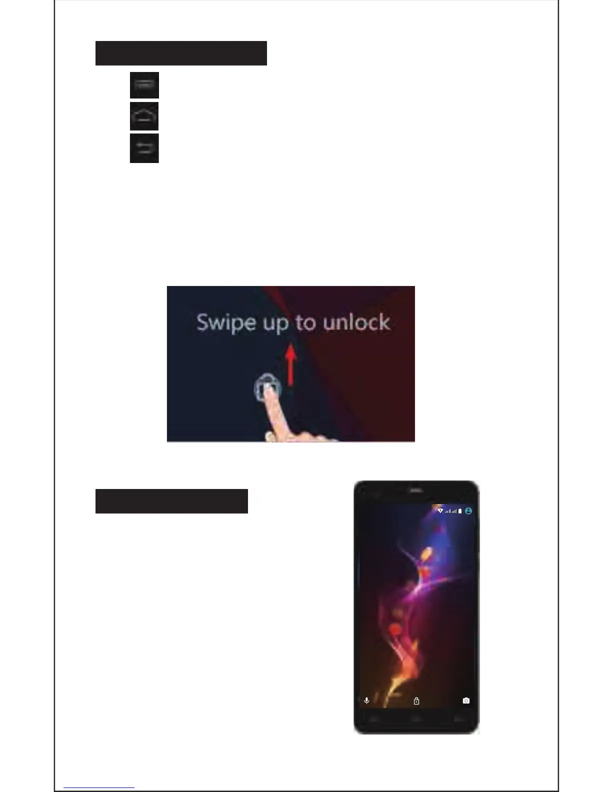 Screen unlock: To unlock, swipe up as illustrated below: