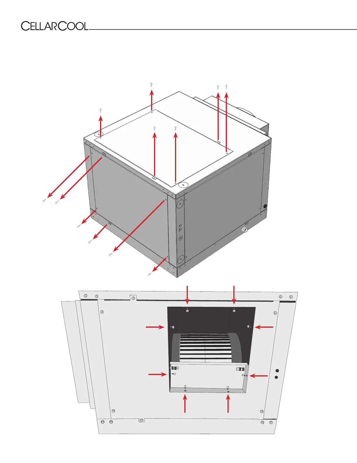 2. To reorient the blower, rst remove the access panels on the rear and top of the unit.