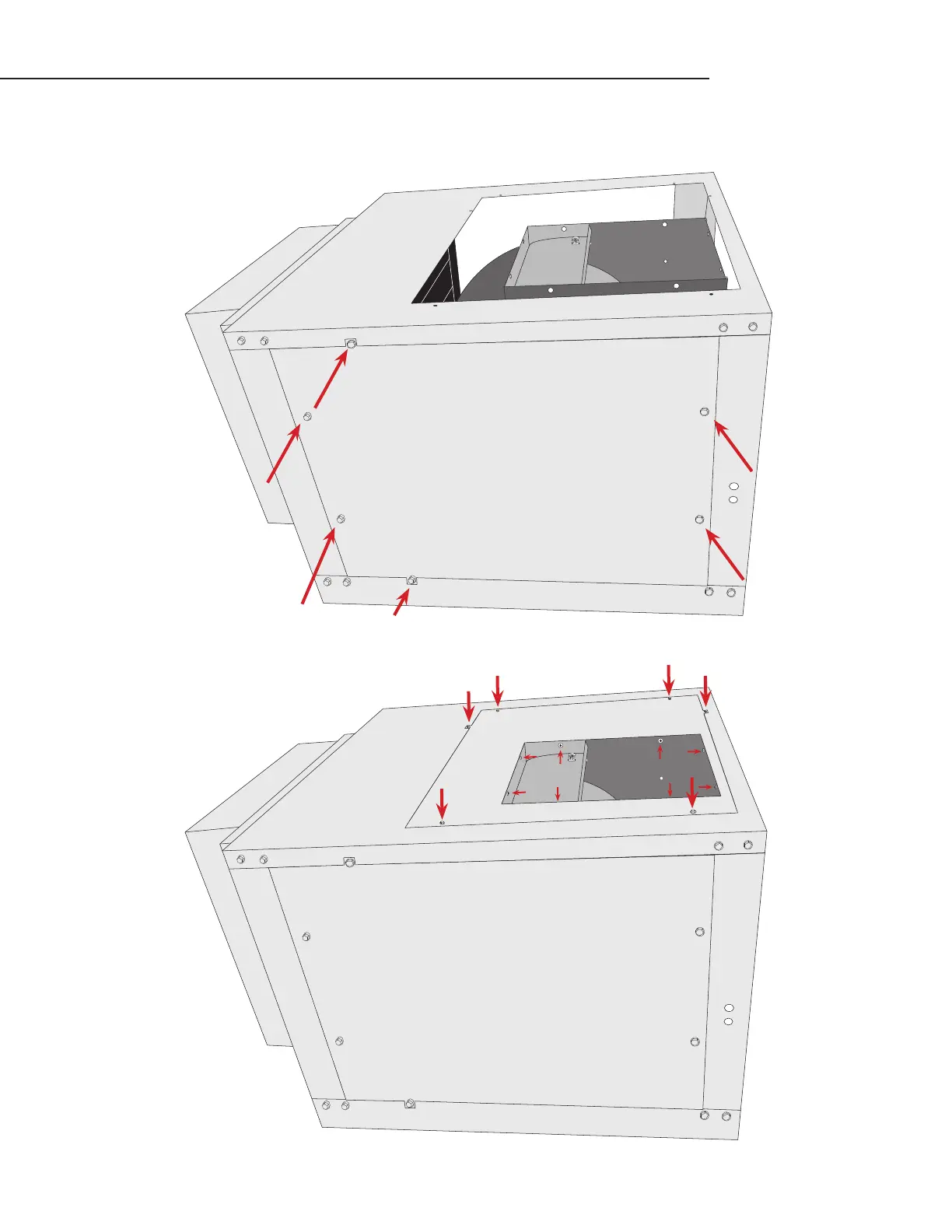 9. Attach the supply panel to the top of the unit using the six (6) screws removed earlier. Then attach the blower to the