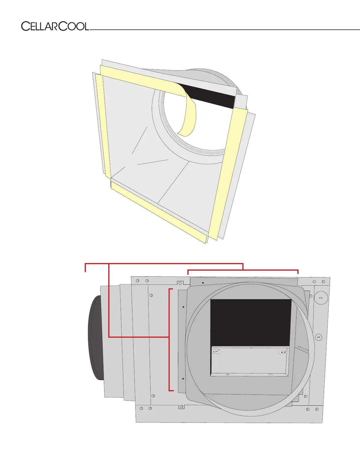 1. Remove the backing from the double-sided tape on the anges of the square-to-round plenum.
