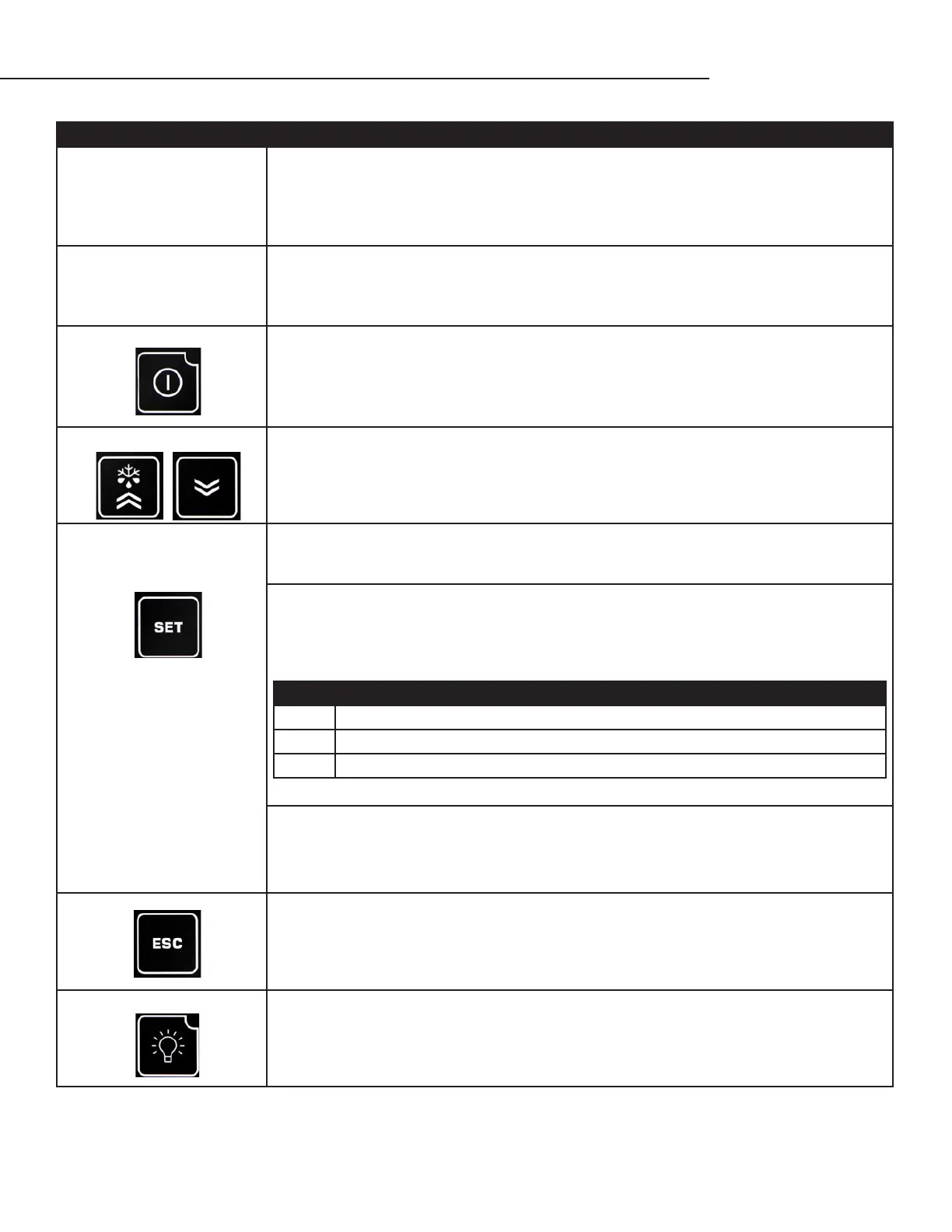 • The SET button allows you to view the setpoint, evaporator temperature, bottle tempera-