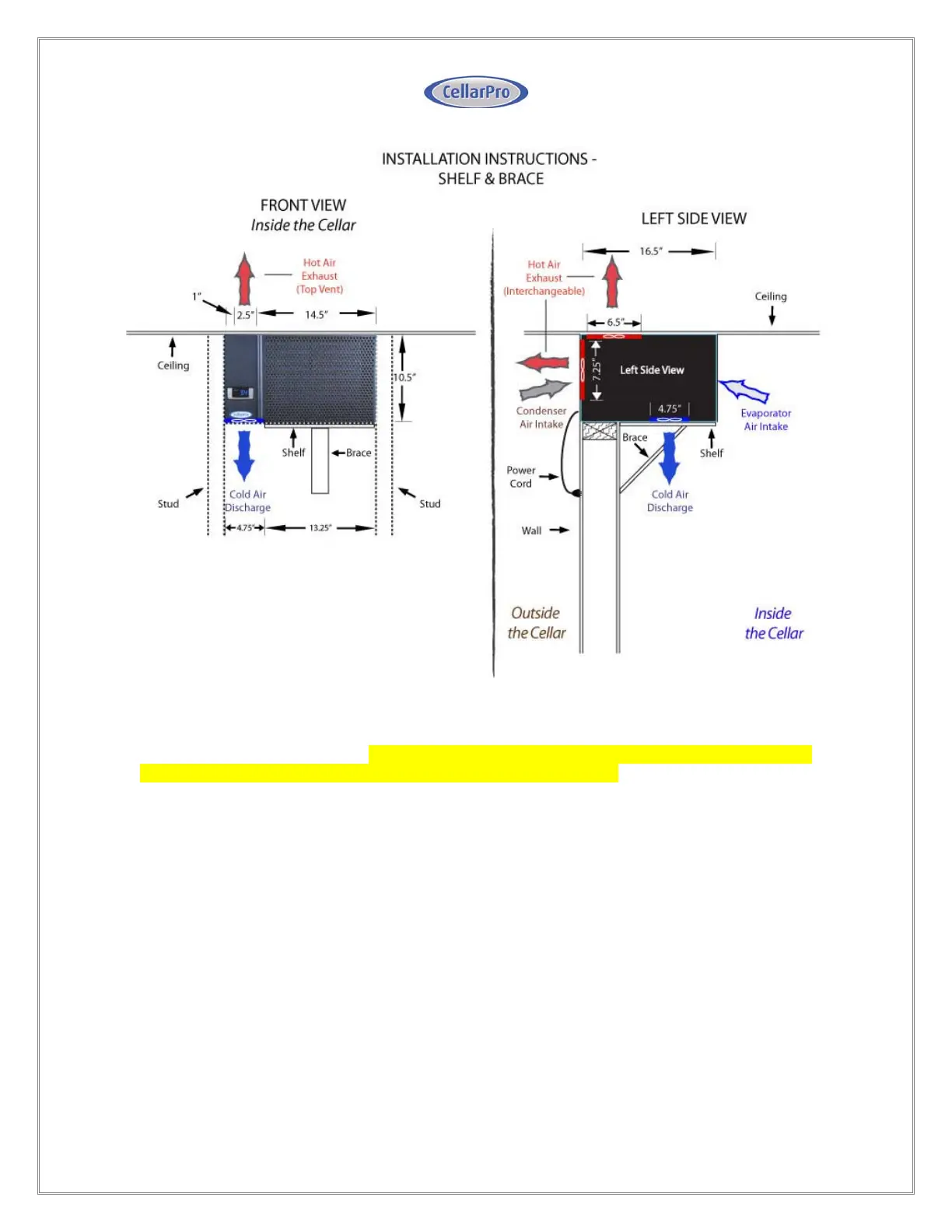 Proper ventilation is critically important for the proper operation of your CellarPro