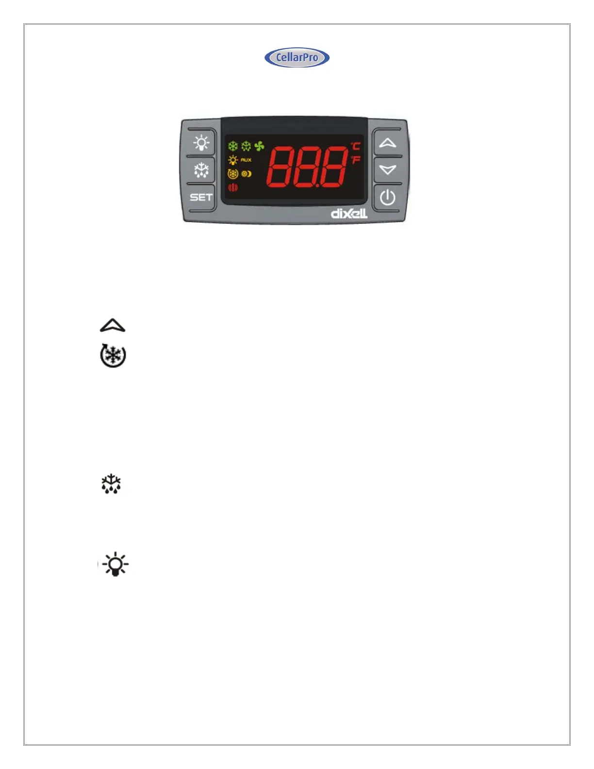 “Defrost” Indicator light (Top row) will turn on for a 20 minute defrost cycle.