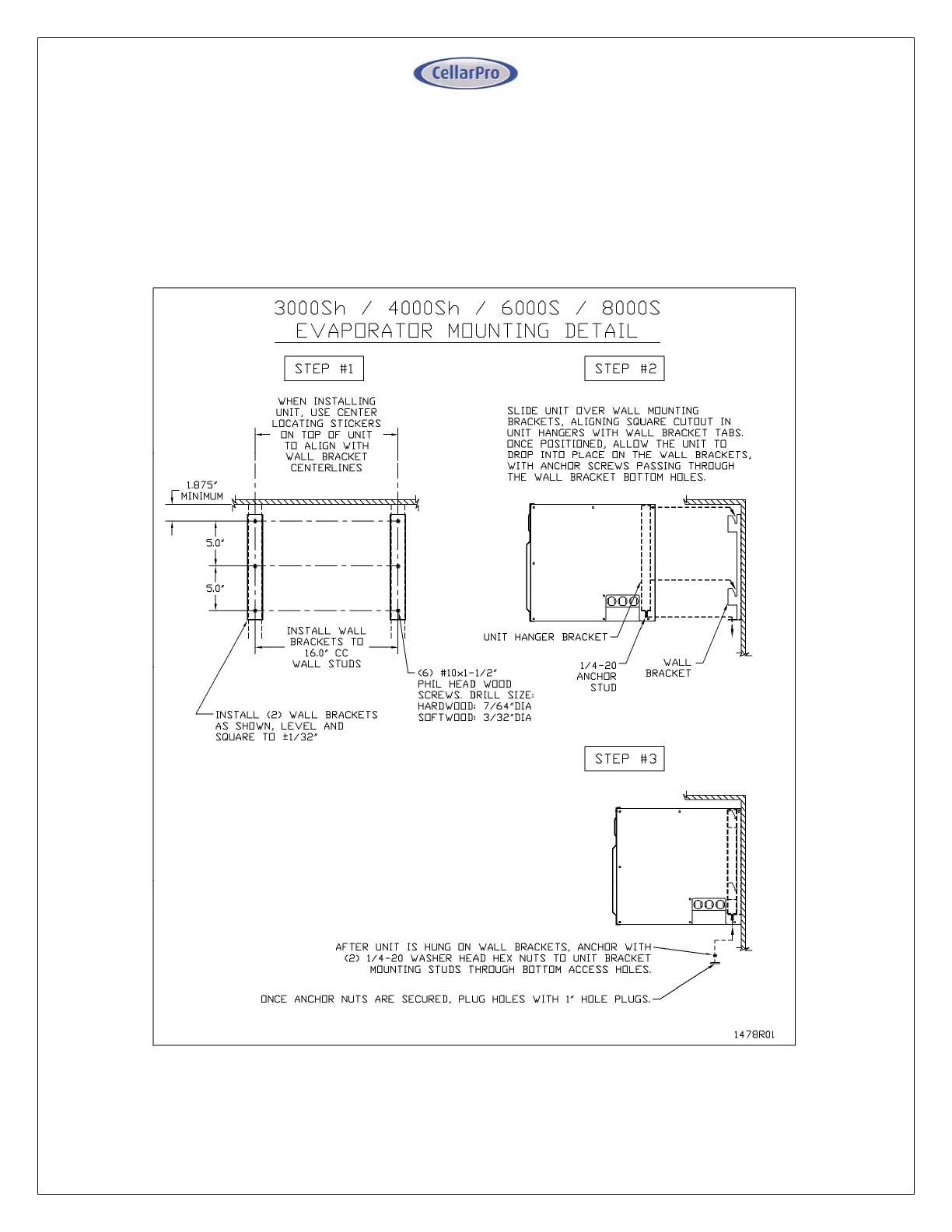 attached to the wall, and then the evaporator slides onto the brackets. After the