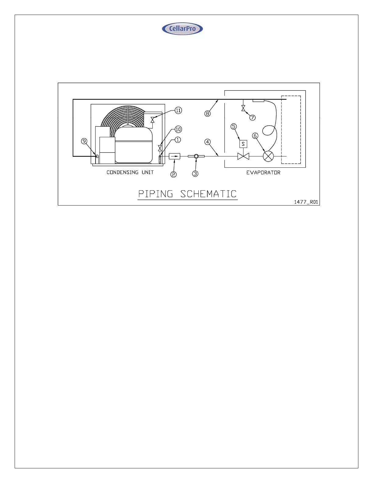 The Evaporator and Condensing units should be piped according to the following