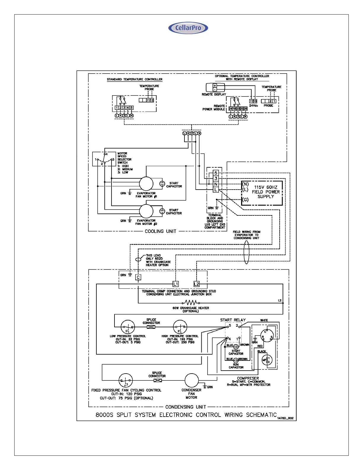 CellarPro 4000S - Appendix F: Model 8000 S Single Power Electronic Control Networkable Thermostat Wiring