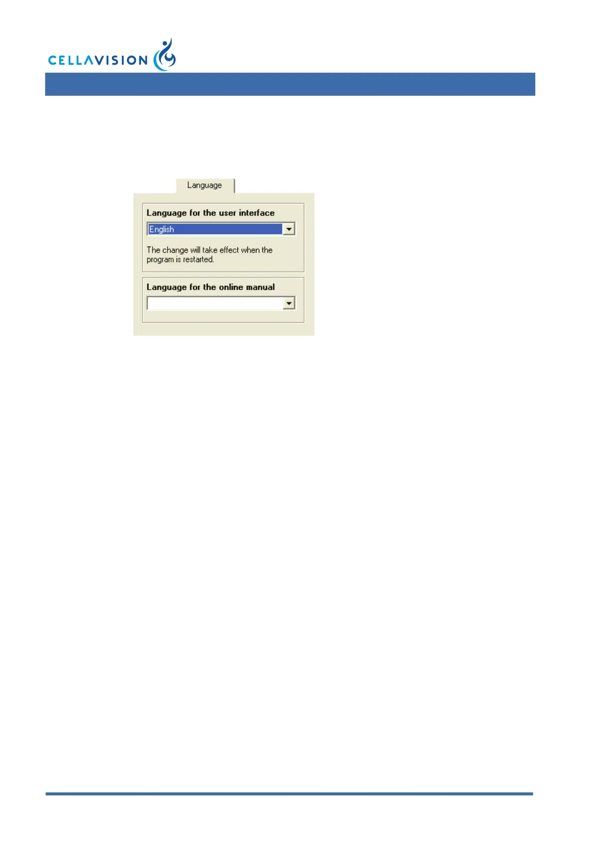 In the Language tab you set language for the user interface and manual.