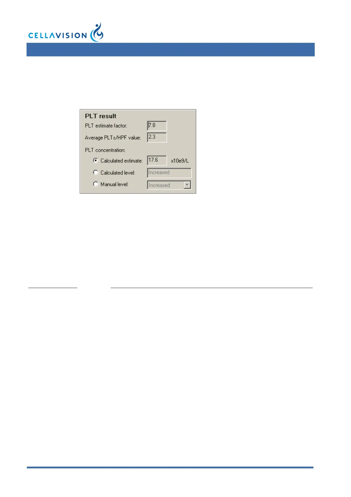 3. If you wish to override the calculated PLT results, select Manual level and