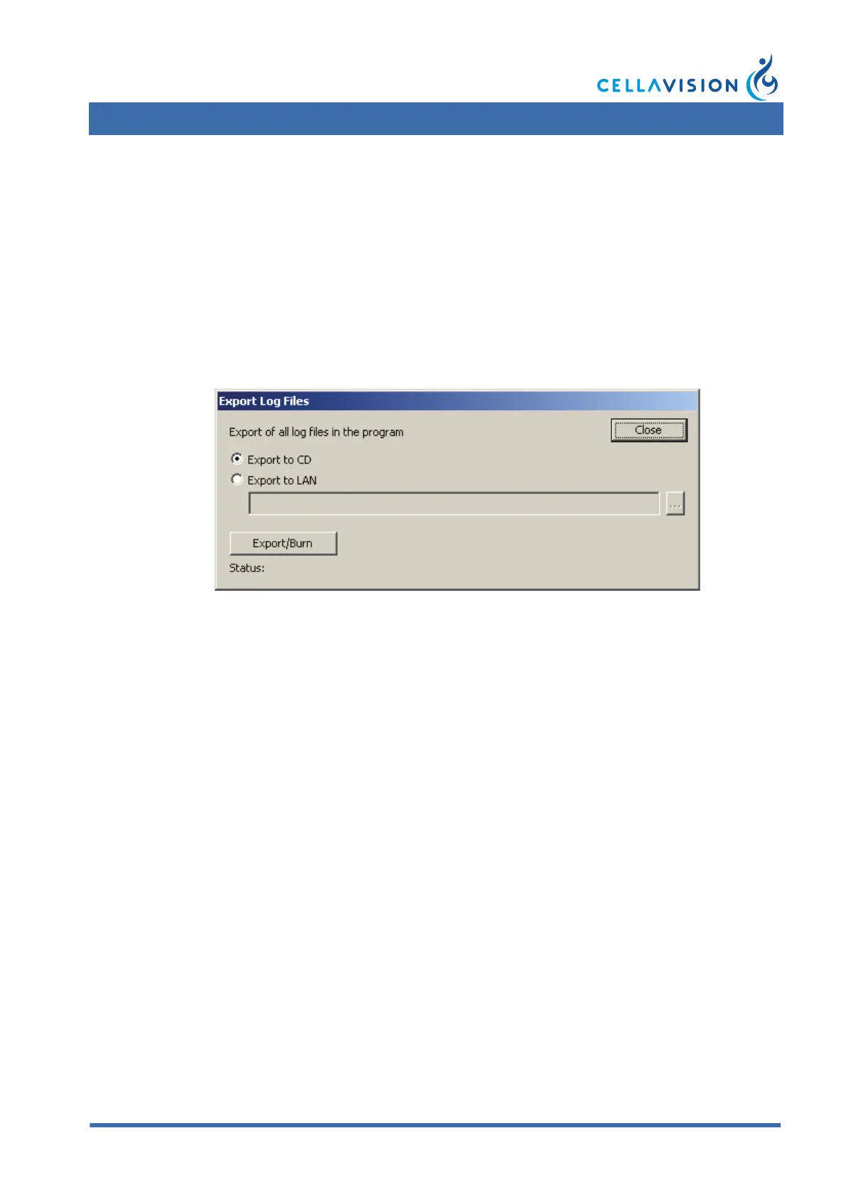 Files. The log files can be burnt directly to a CD, or exported to the LAN (and
