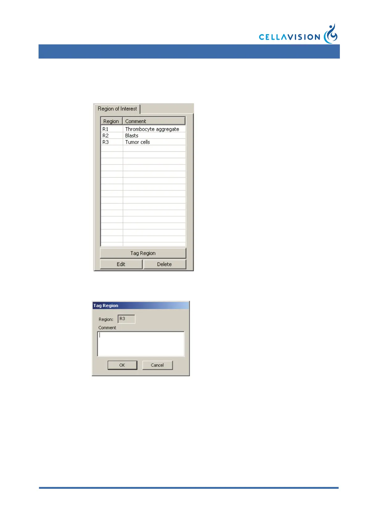 To save an enlarged area as a region of interest for later reference, click Tag region.