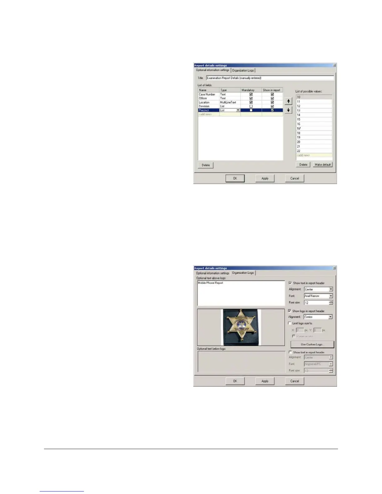 • Show in report– Specifies whether to show this field in the report.