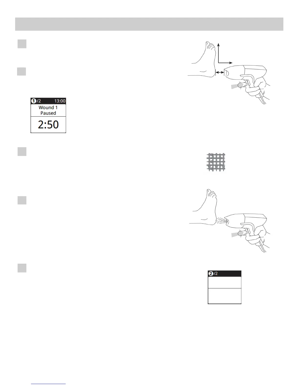 horizontallyacrossthewoundusingmulplepasses.Thetreatmentwand