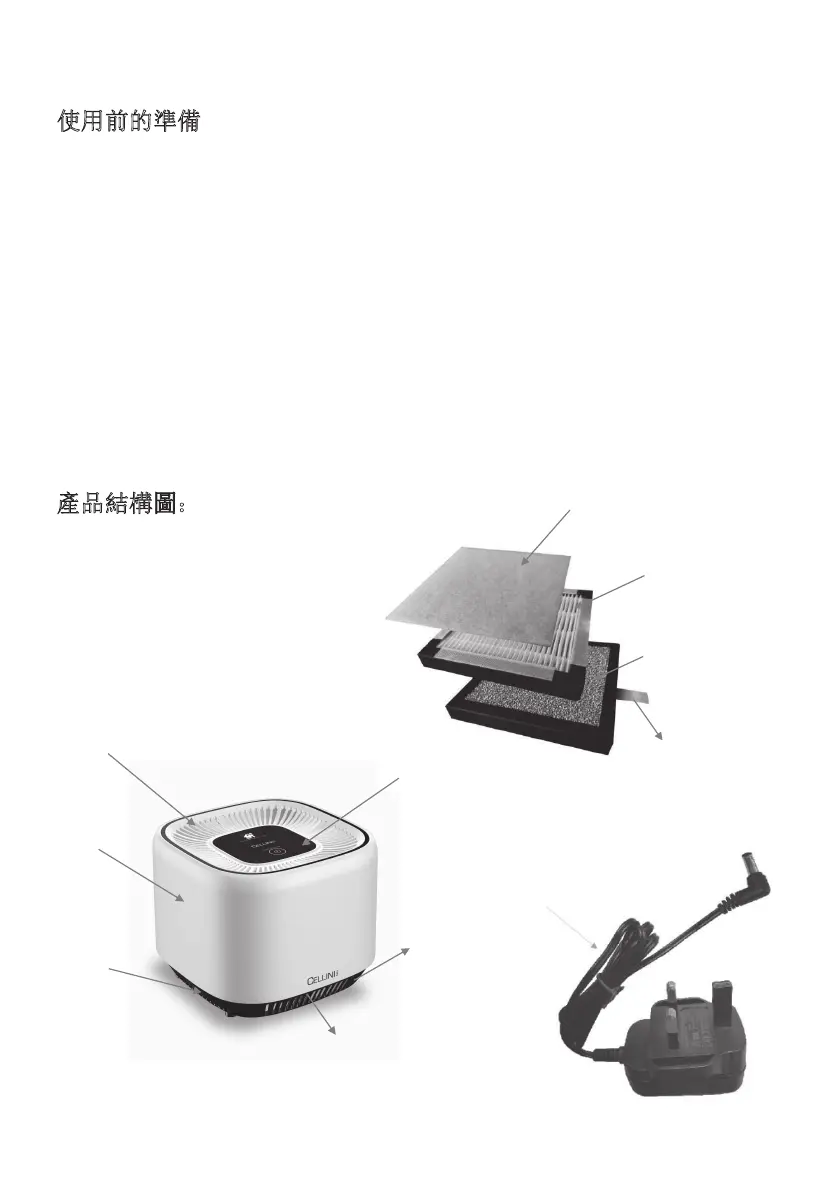 使用前請清除產品表面包裝及保護膜,清除濾網的塑膠包裝袋