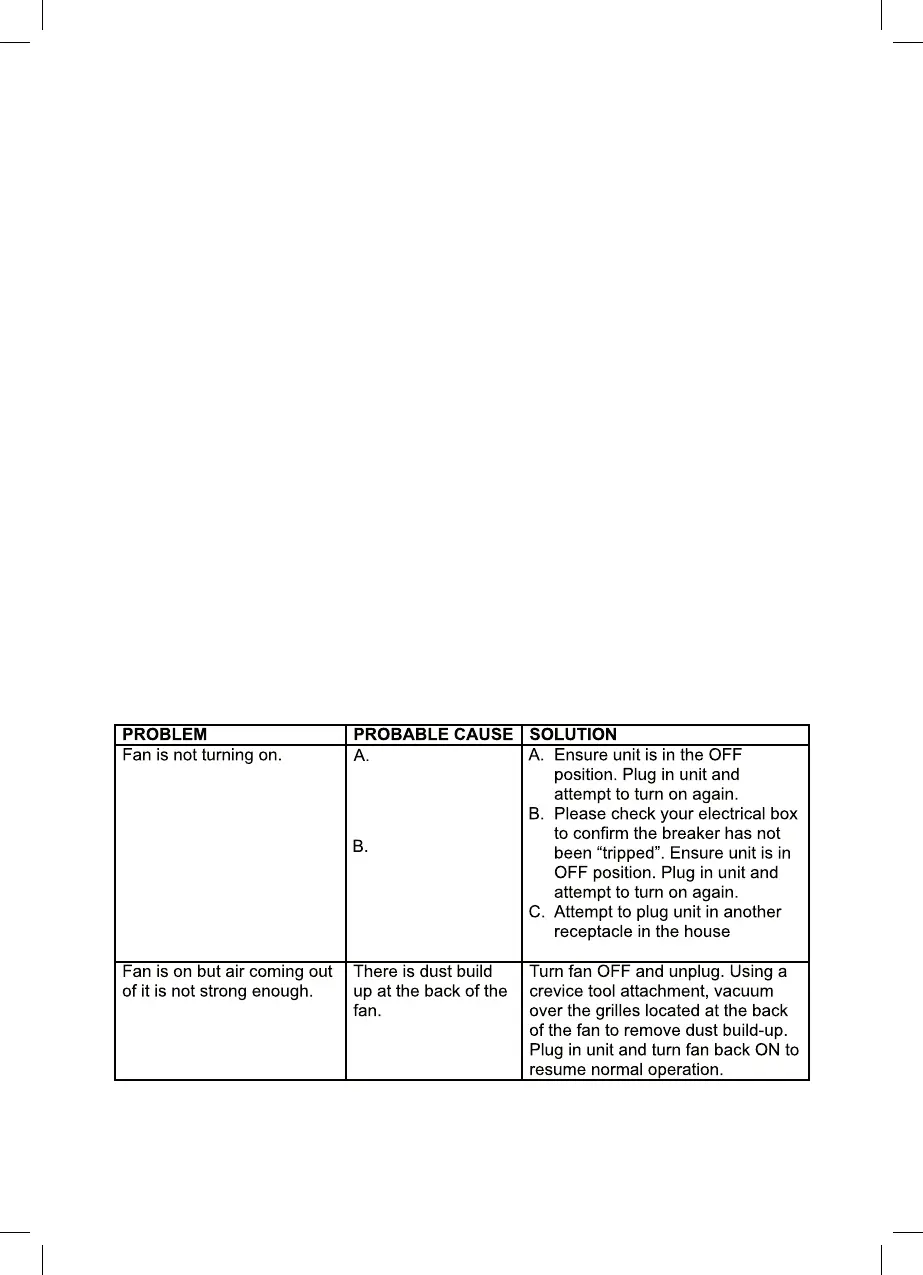 If your fan fails to operate, please follow these procedures prior to contacting customer