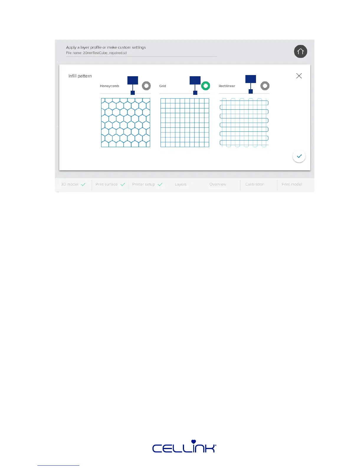 1. Inll – If enabled, BIO X will use the selected printhead to bioprint the inll paern