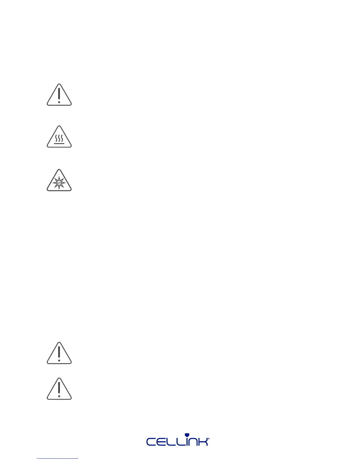If BIO X acts in a way that is not described by this manual, turn it o and contact CELLINK.