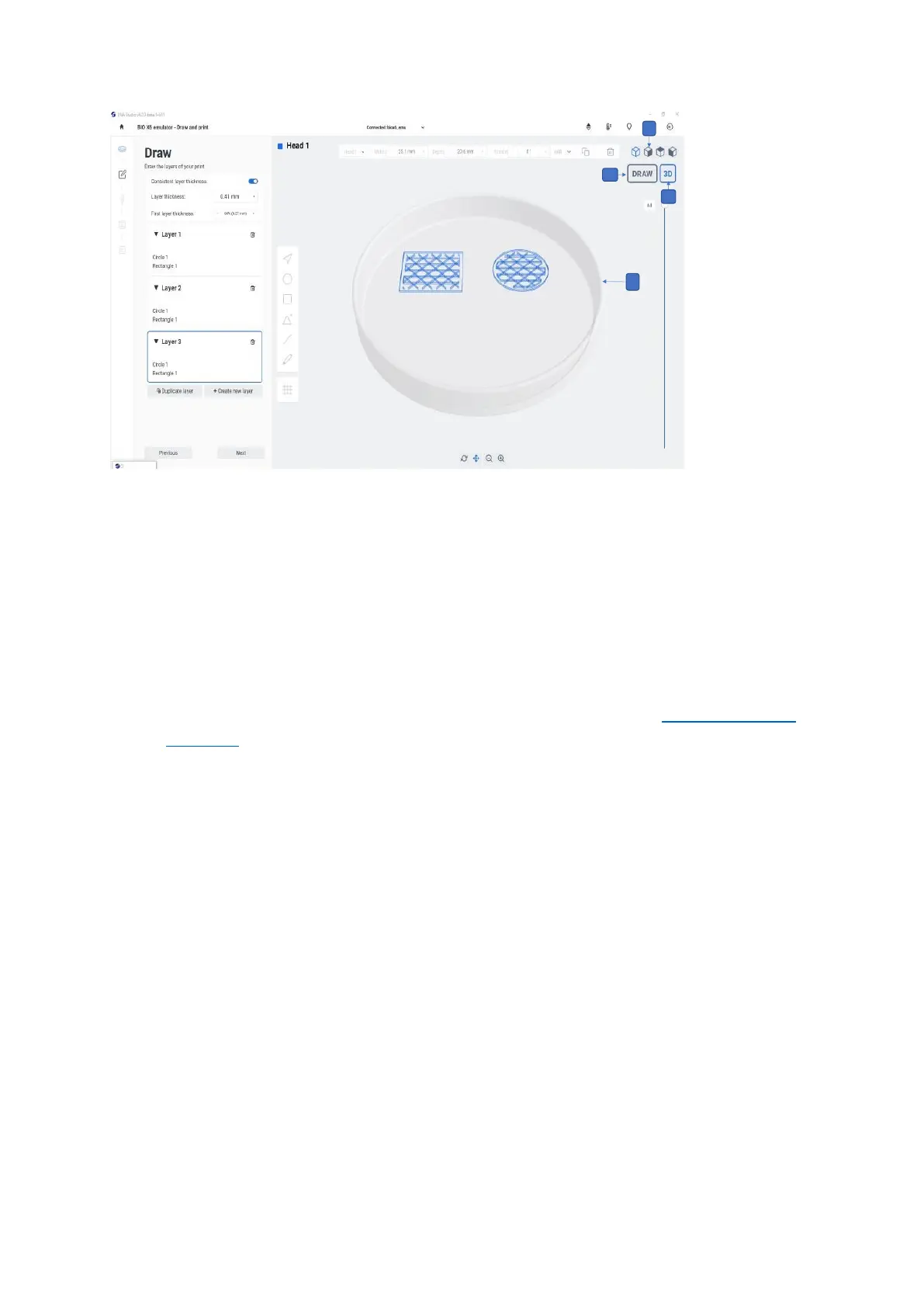 2. 3D: The 3D view is the standard view for printing 3D models (see Bioprinting from a