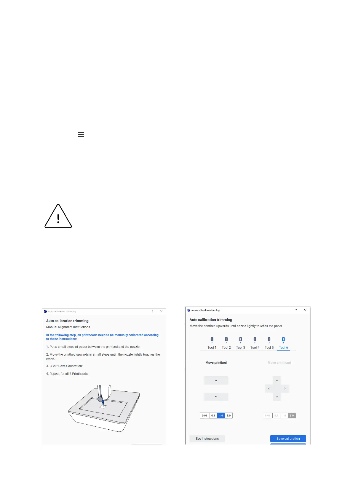 5. Tap Continue to proceed to the manual calibration of each printhead.