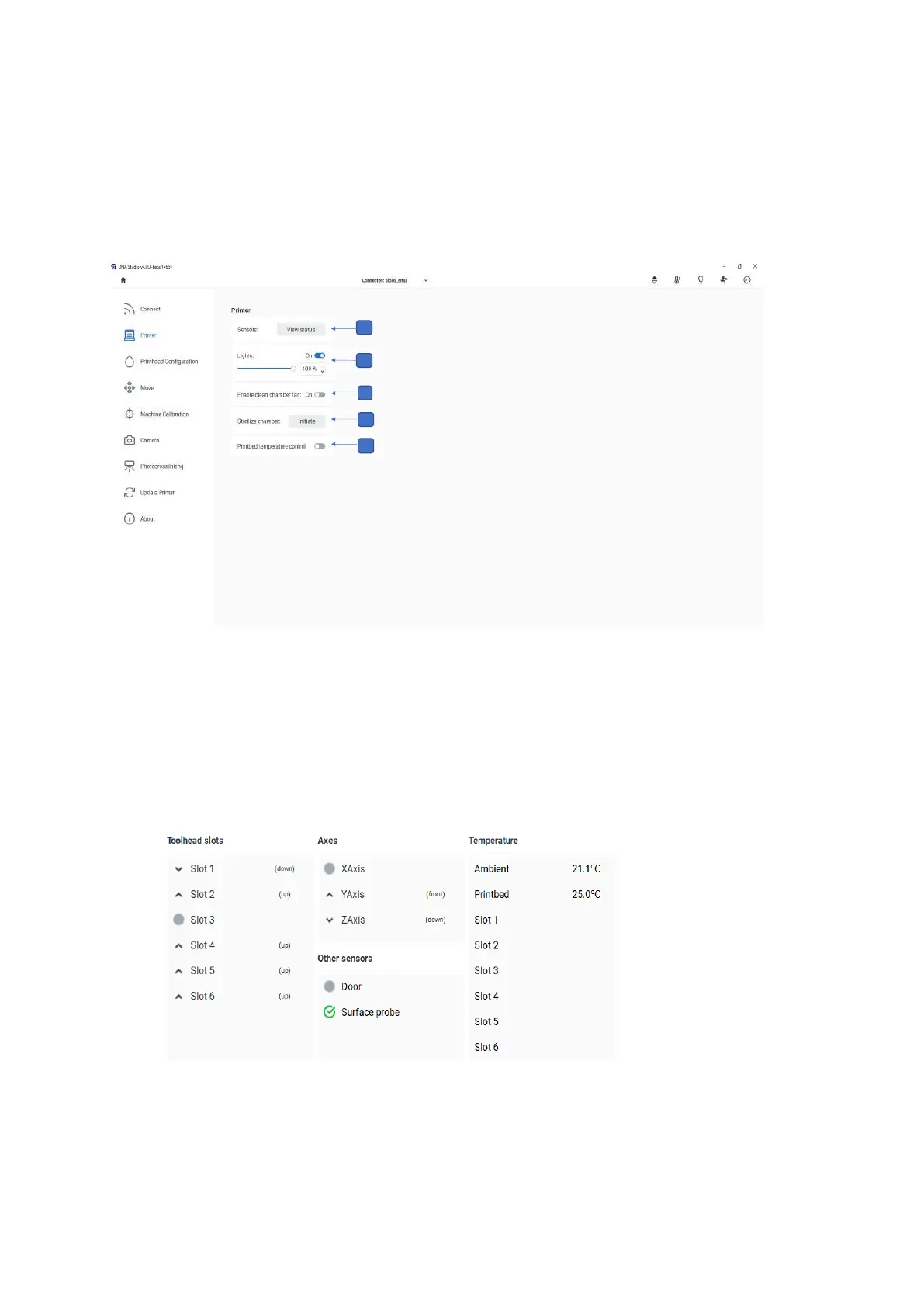 1. Sensors: Display output data for customer support. CELLINK uses this tab to perform