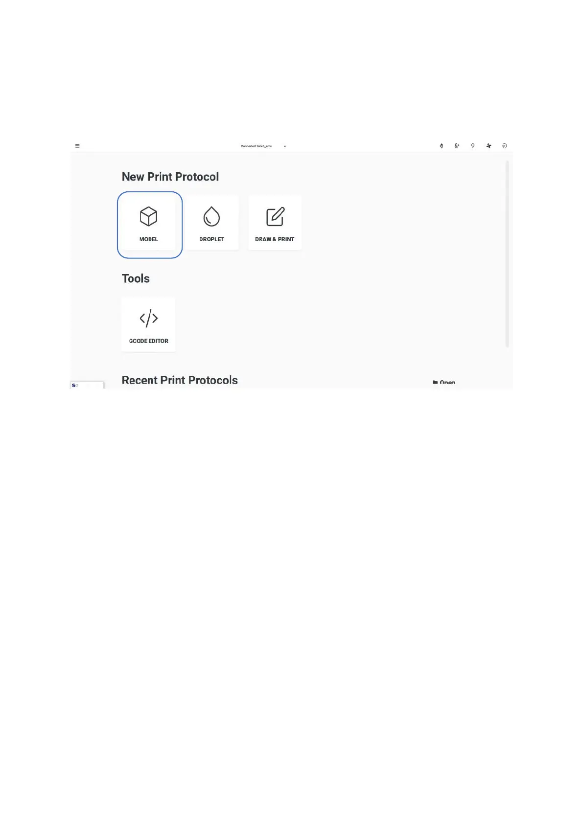 On the home screen, tap Model to start a new bioprinting process using a 3D model. The