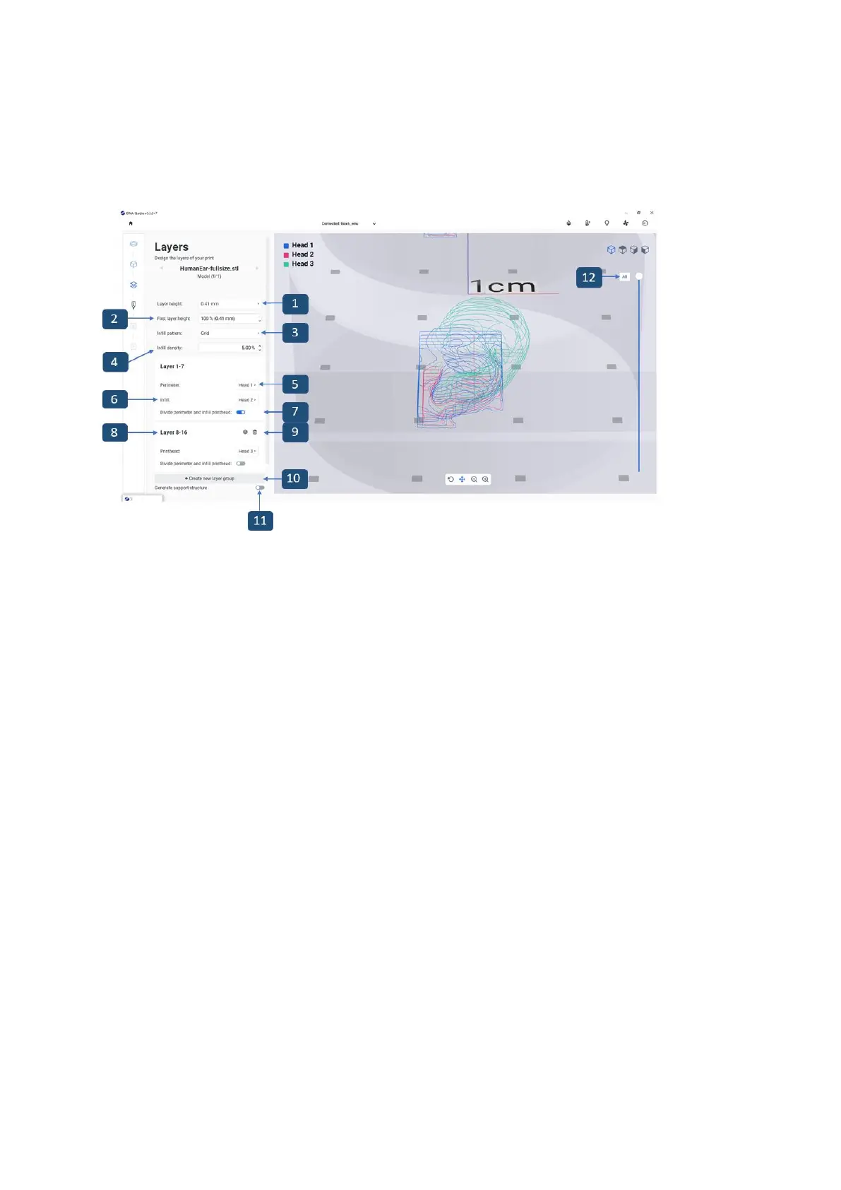 6. Layer group head infill selection selects which printhead on one specific layer