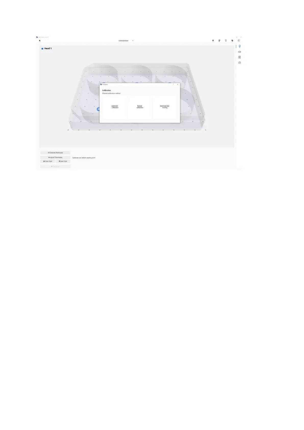 To perform automatic calibration, you must first attach the surface probe to the printhead