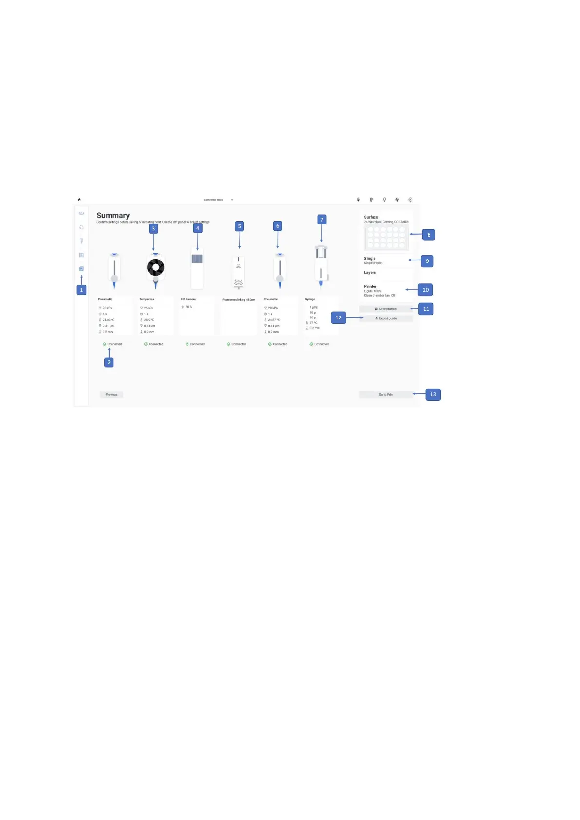 bioprinting process, tap Go to Print and continue with the calibration settings.