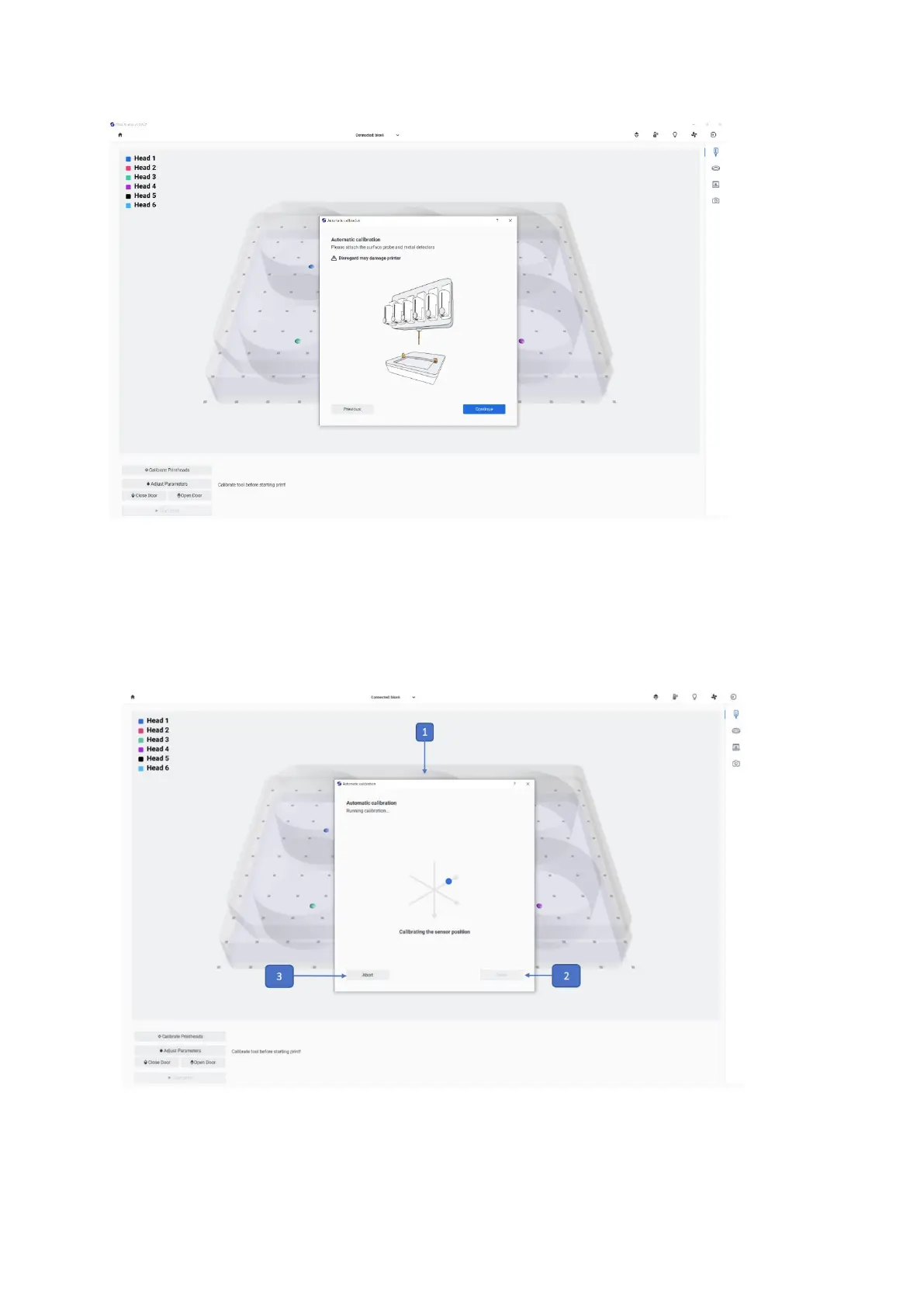 connector body and the metal reflectors to the printbed. Then tap Continue to proceed.
