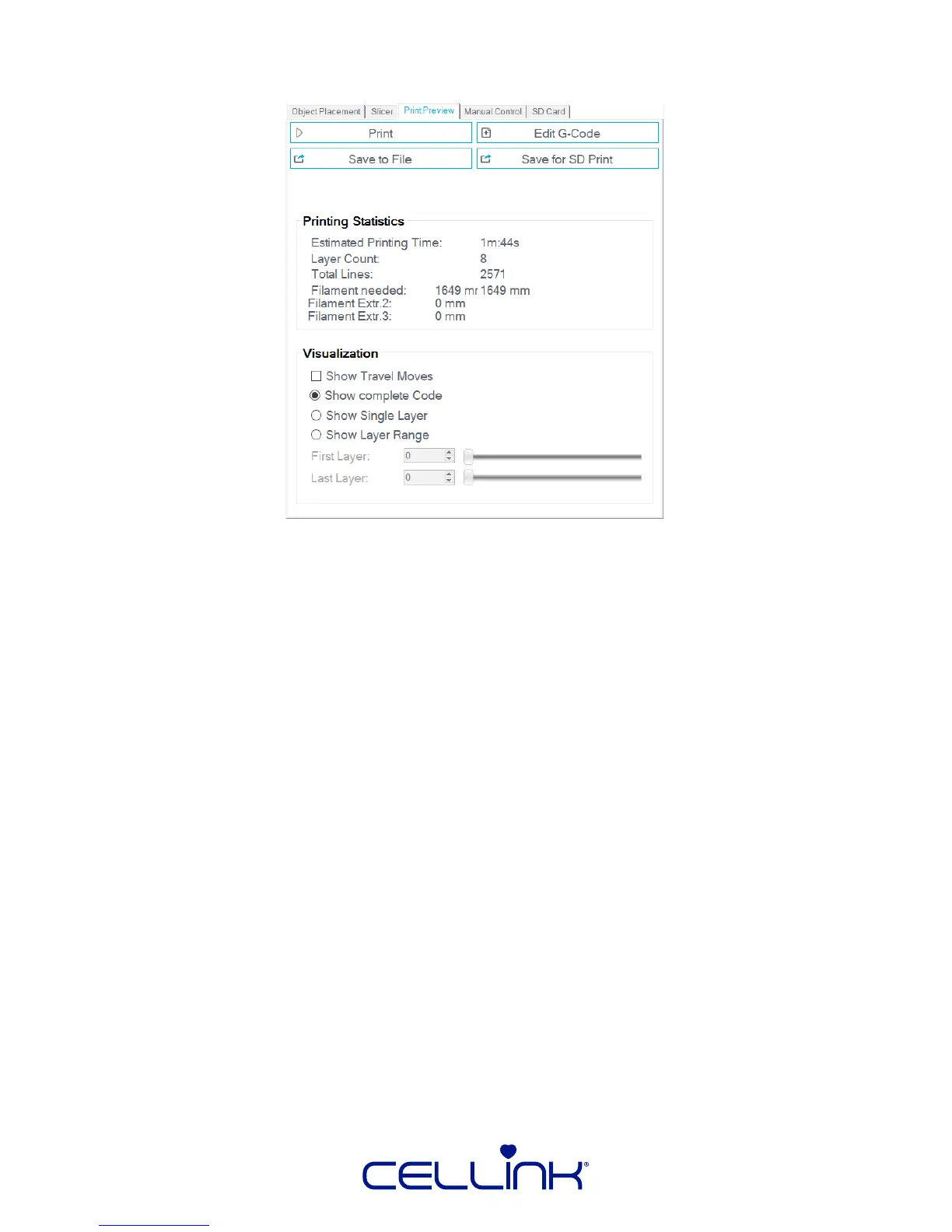 Save for SD Print – Like “Save to File”, it is designed for reuse of the G-Code le; however,
